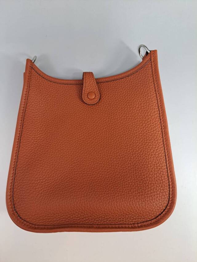 かわいいサイズのエヴリンTPMが入荷しました。開口部はスナップ式で、中身の取出しがスムーズ。エルメスの頭文字Hを型押しした個性的で存在感のあるバッグですが一つ一つ熟練職人が手作業で縫製するため大量生産ができずにいる希少なアイテムです。ちょっとしたお出かけに普段使いにちょうどよいサイズです。 |